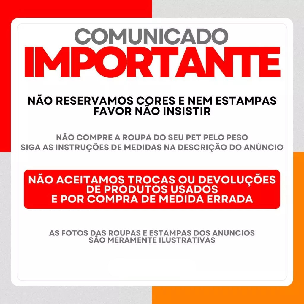 PP: Comprimento 25 cm | Circunferência 44 cm | Pescoço 40 cm